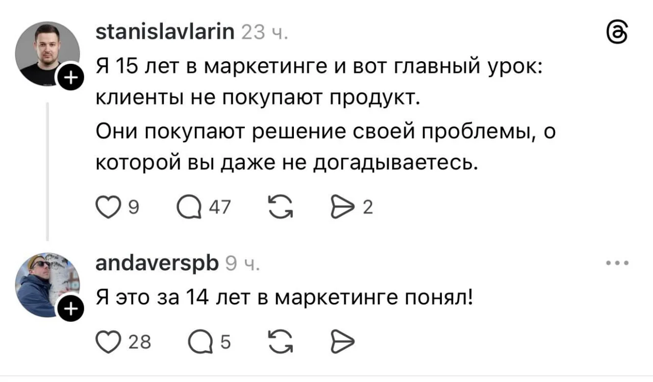 Знаете, а я вот нихера не понимаю иногда клиентов. Думаешь - вот за это готовы платить, делаешь и ... НИ-ХУ-А. Не платят. Зато платят за такую странность иногда, что сам удивляешься.Потихоньку прихожу к мнению, что самый лучший маркетинг + продукт + подход тот, про который можно сказать "ну это дичь, дружище- никому не надо" :)